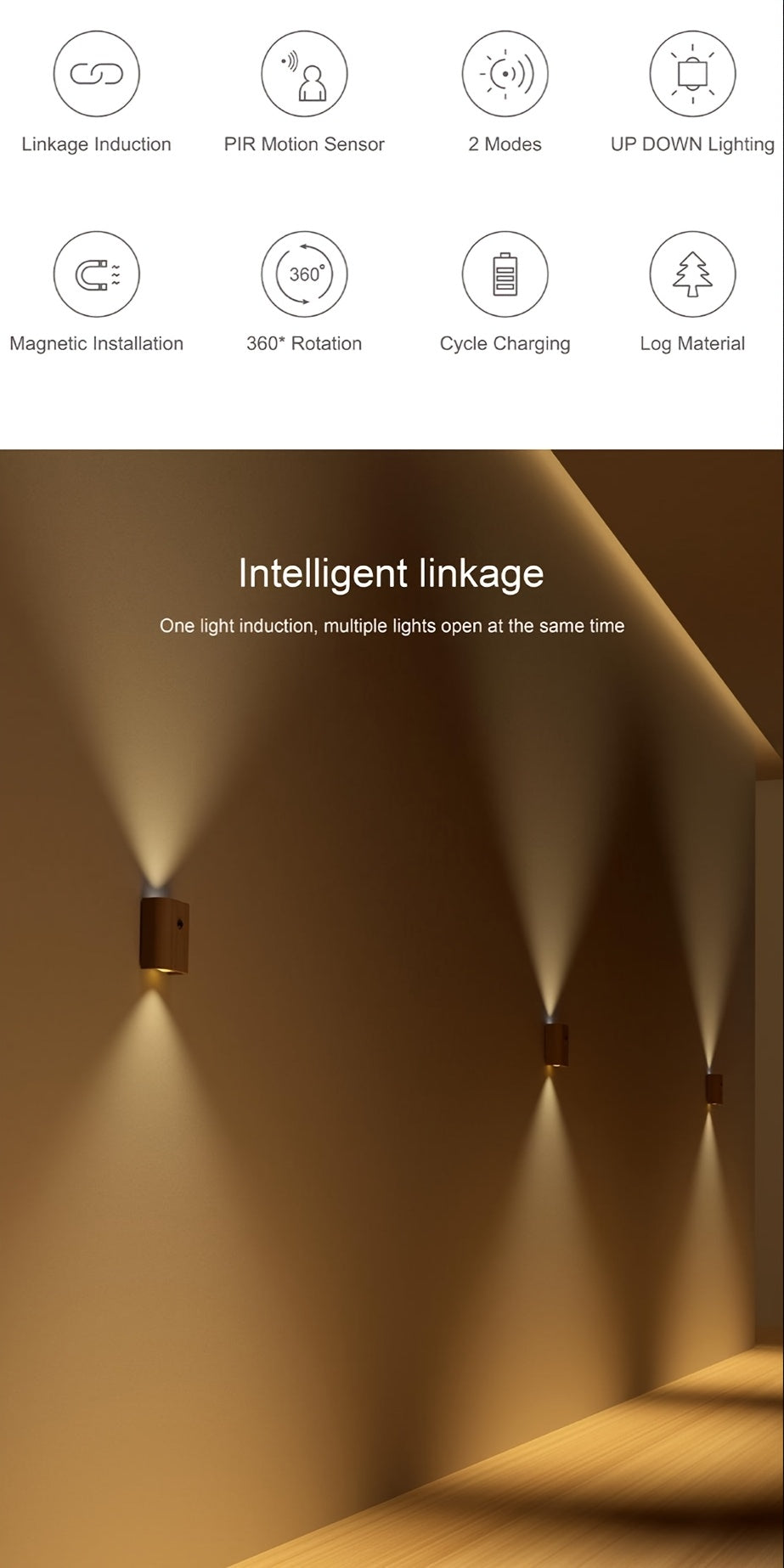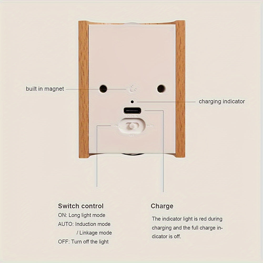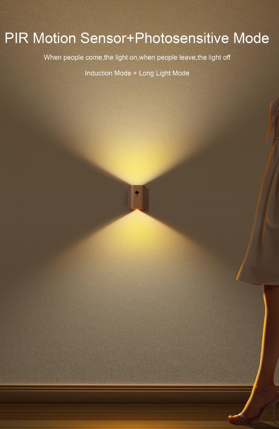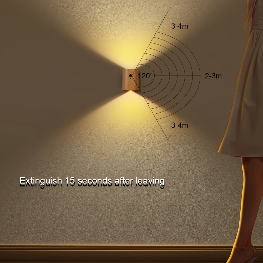 מנורת קיר חכמה עם חיישן תנועה (USB-C נטען) — אור חם למעלה ולמטה