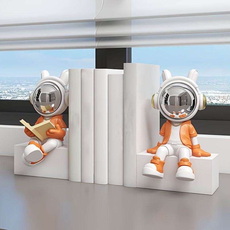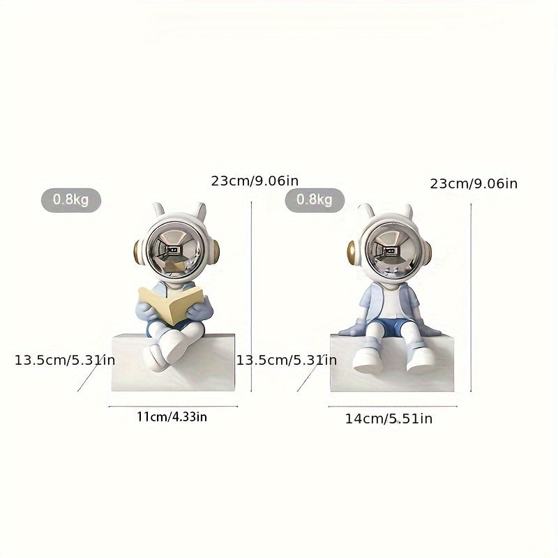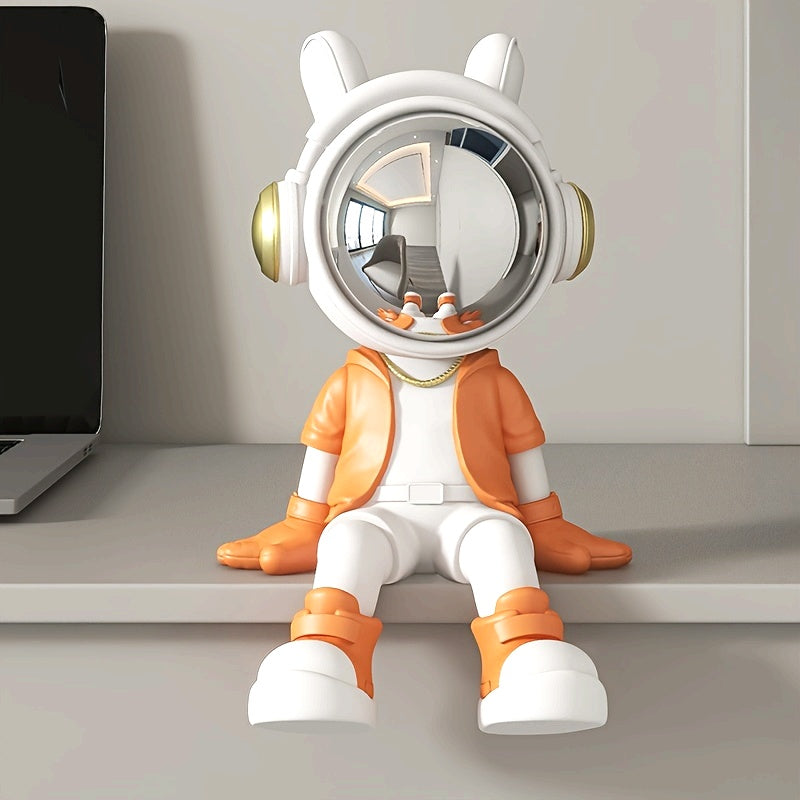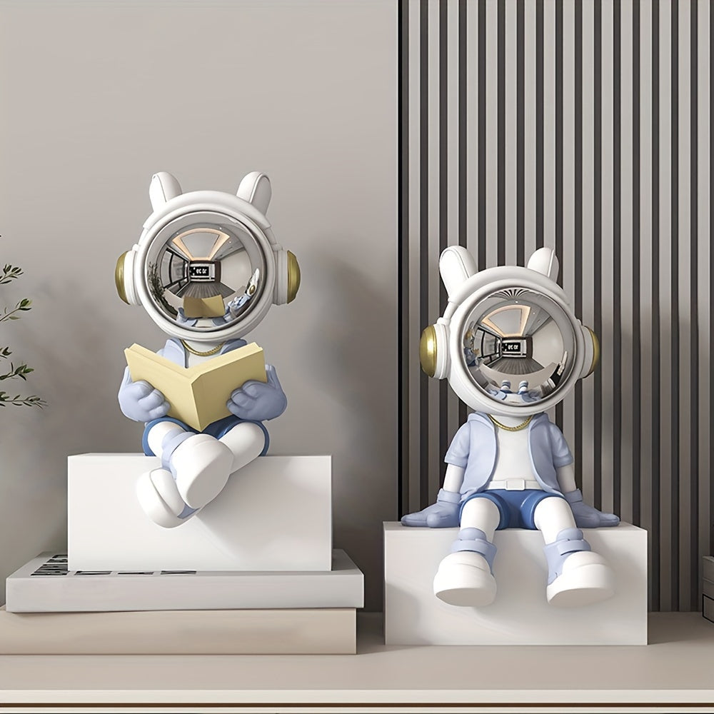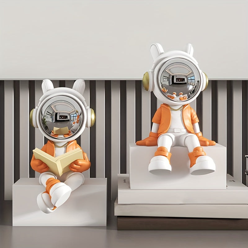 • 🧑🚀 פסל אסטרונאוט יחיד (לפי הווריאנט שבחרת — יושב/קורא, כתום/כחול)