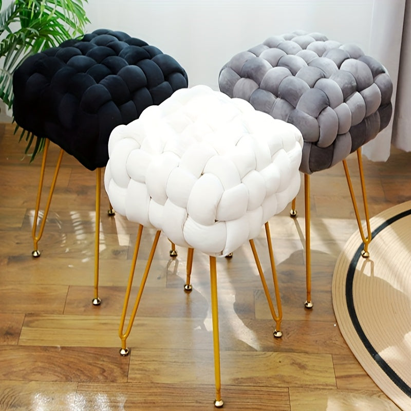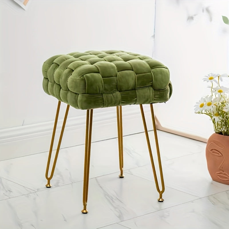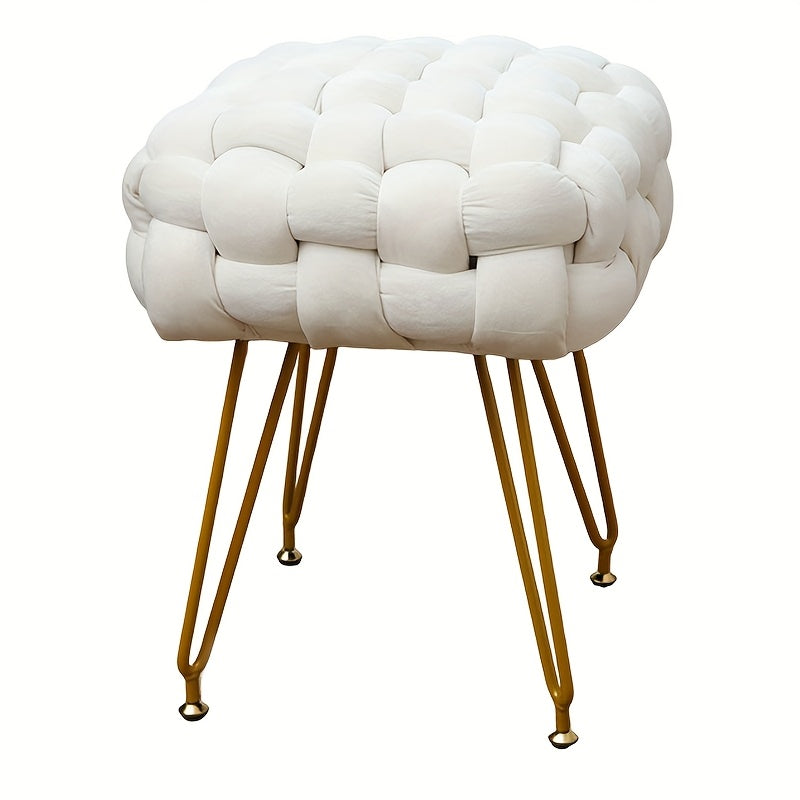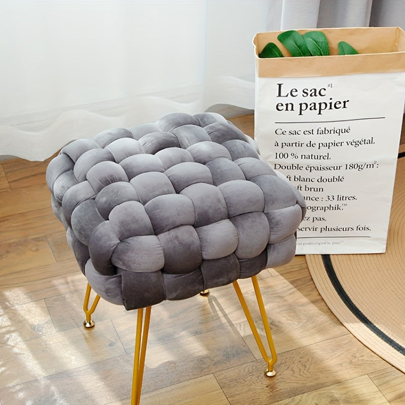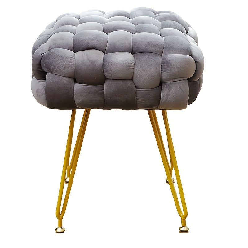 הדום/שרפרף ארוג בסגנון מודרני — רגלי מתכת מוזהבות וריפוד קטיפתי