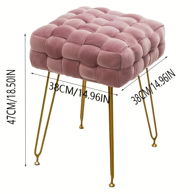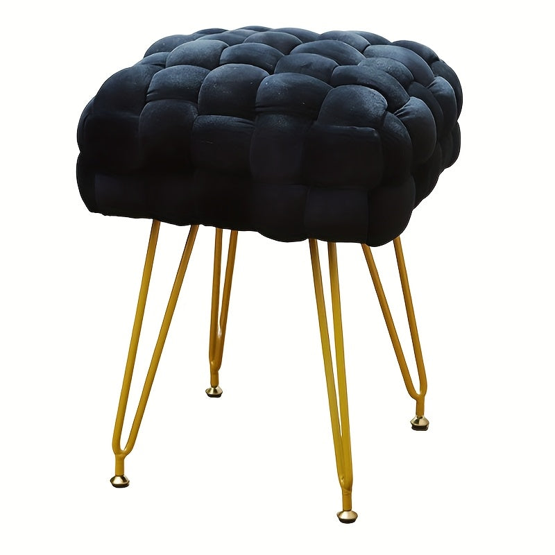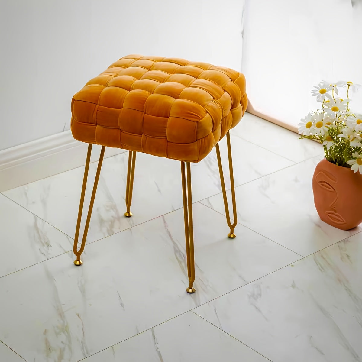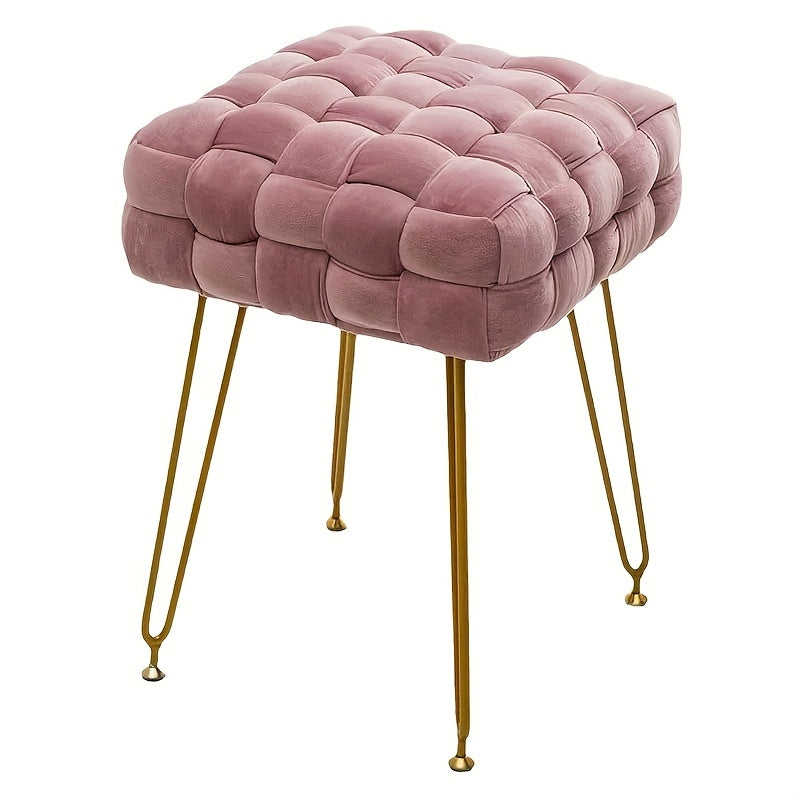 הדום/שרפרף ארוג בסגנון מודרני — רגלי מתכת מוזהבות וריפוד קטיפתי