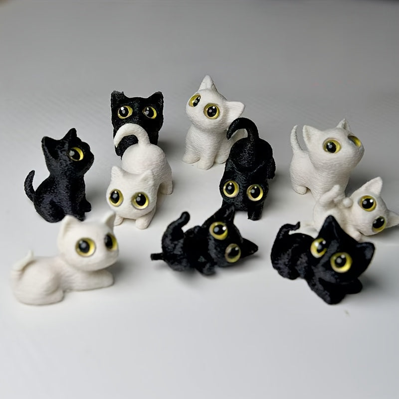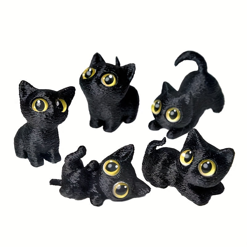 - 🐱 5 מיניאטורות חתולים מודפסים בתלת־ממד, בתנוחות שונות (שחור/לבן — עשוי להשתנות לפי המלאי).
