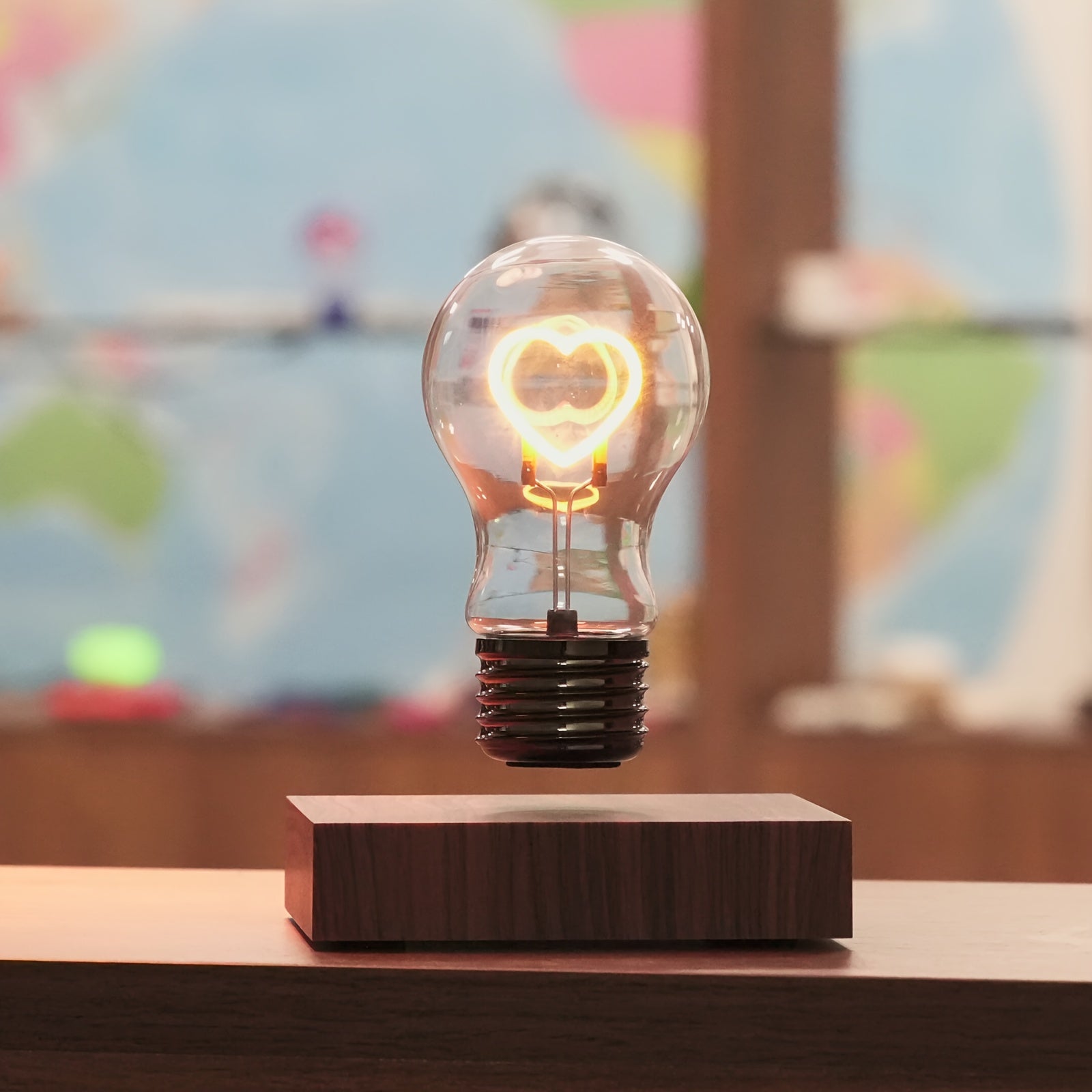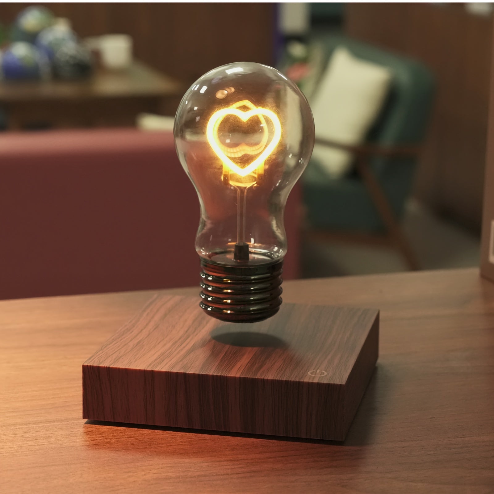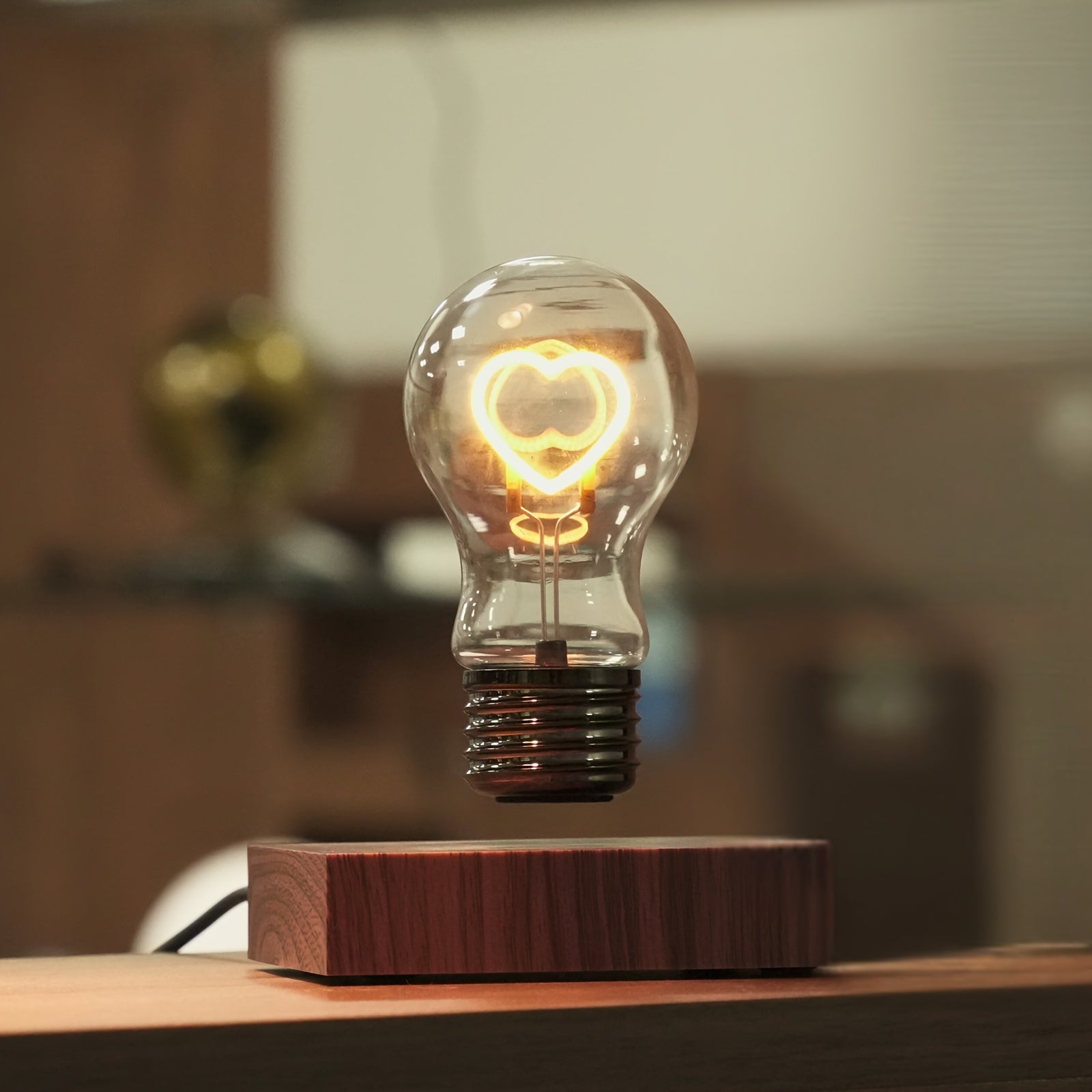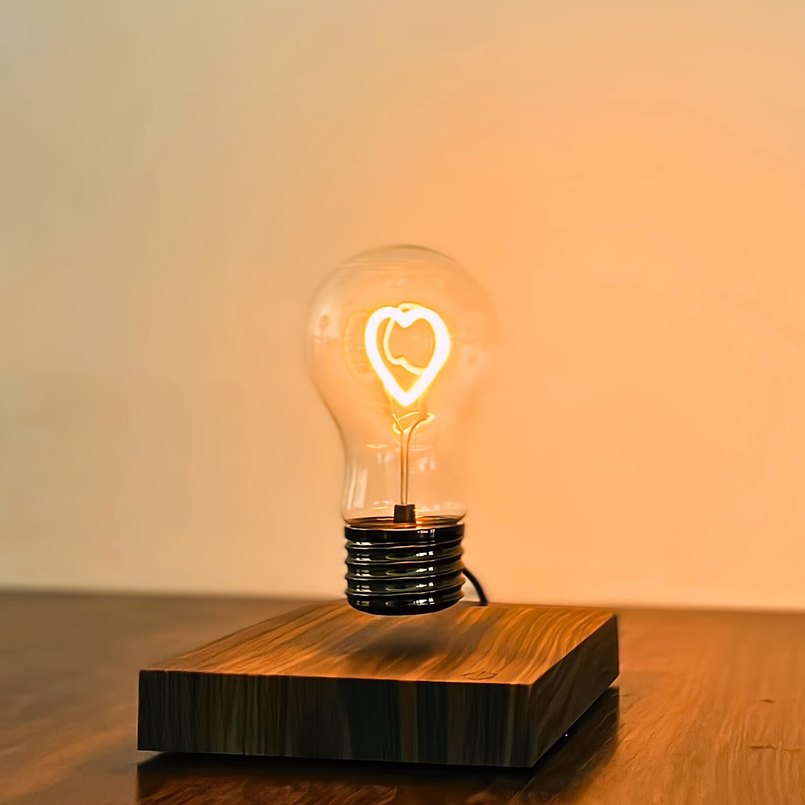 נורת LED בצורת לב שמרחפת בעדינות מעל בסיס דמוי-עץ ומאירה בזוהר חם ומרגיע. נוגעים בבסיס — והיא נדלקת. מתנה מושלמת לחדר שינה, סלון או שולחן משרדי.