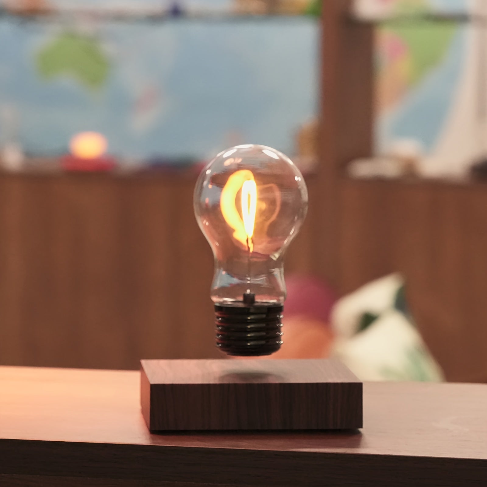 הנורה “תלויה” באוויר מעל הבסיס. אפקט וואו מידי בכל פעם שמדליקים.