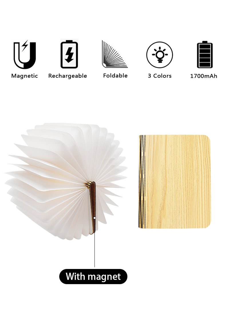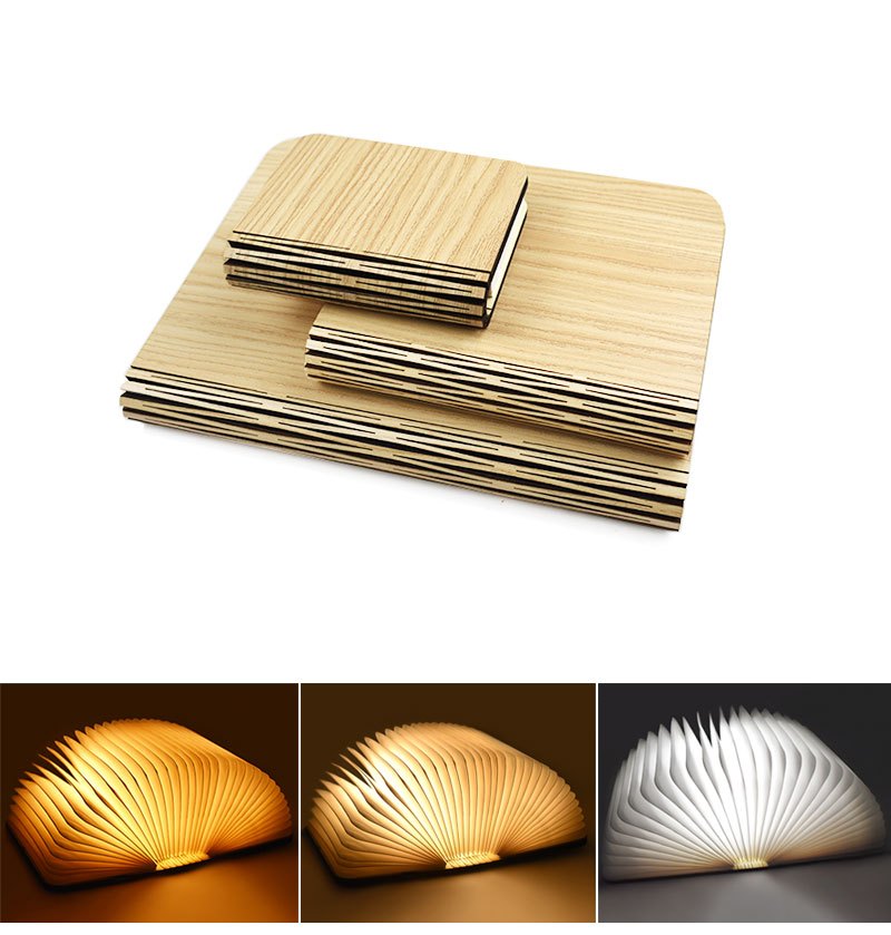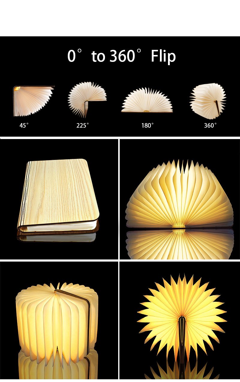 מנורת “ספר” מעץ מתקפל — 3 גווני אור, נפתחת 0–360°