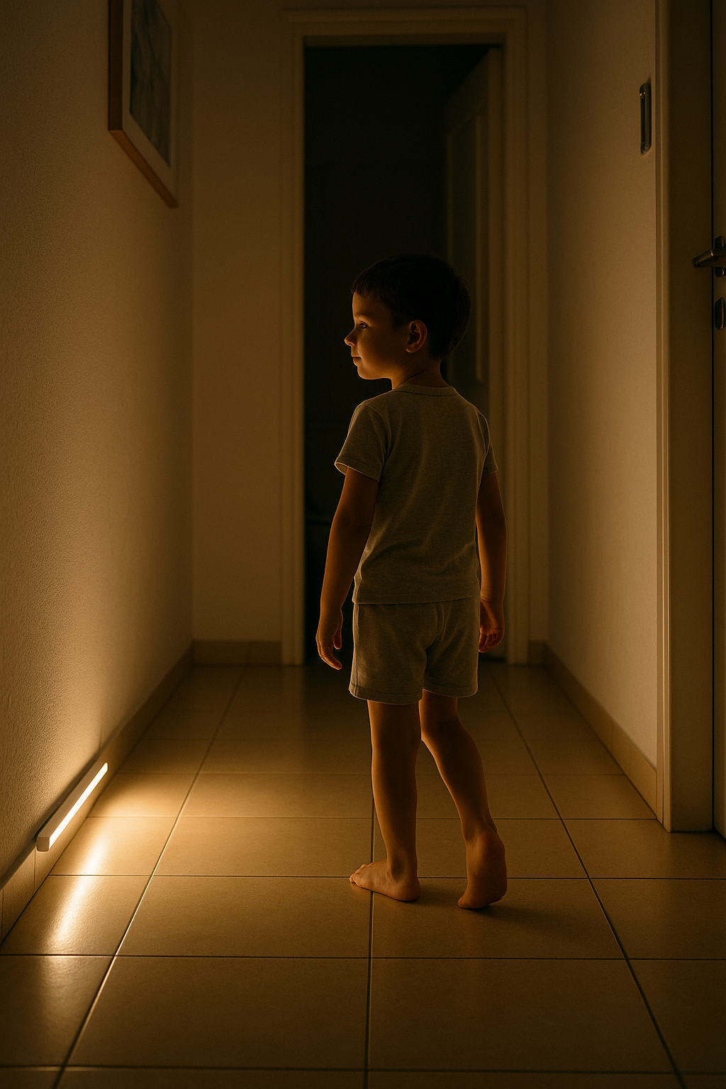 הילד קם בלילה? נדלק ומכוון — ואז נכבה לבד (~20 שנ׳).