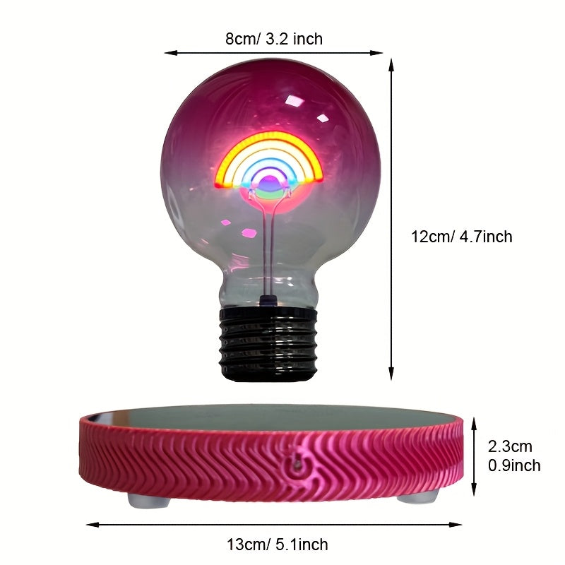נורת זכוכית בעיצוב קשת צבעונית שמרחפת באוויר באמצעות מגנטיות (Maglev), מסתובבת בעדינות ב־360° ומדליקה אווירה חמימה בלחיצת מגע. פריט דקור מושלם לסלון, לחדר עבודה או כמתנה שמדליקה חיוך.